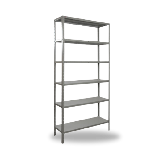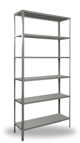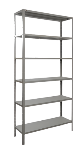 Estante de aço 60 – 2,50 OU 3,00 Altura – Linha Pesada Estante na cor cinza, com 06 bandejas reguláveis e reforço ômega, com capacidade para suportar uma sobrecarga de até 80 quilos por bandeja. Medidas:0,60 X 0,92 X 2,50 ou 0,60 X 0,92 X 3,00 Especificação: produzido em chapa de aço 22, tratada com anti-ferruginoso, fosfatização e pintura epóxi-pó por processo eletrostático na cor cinza.